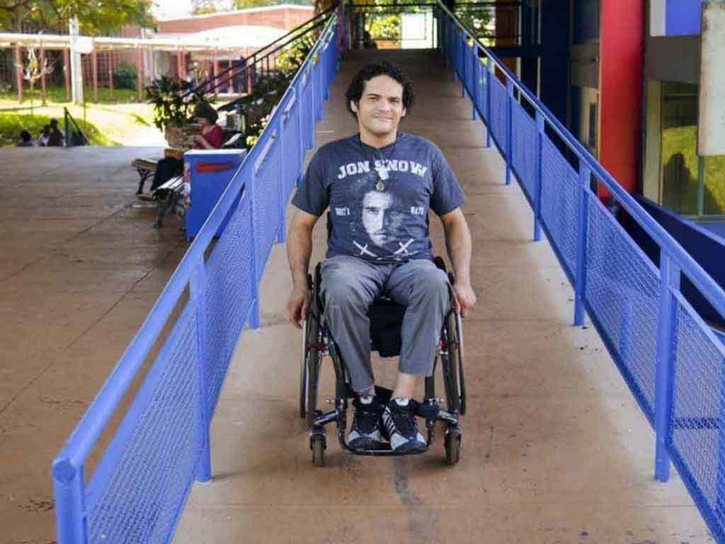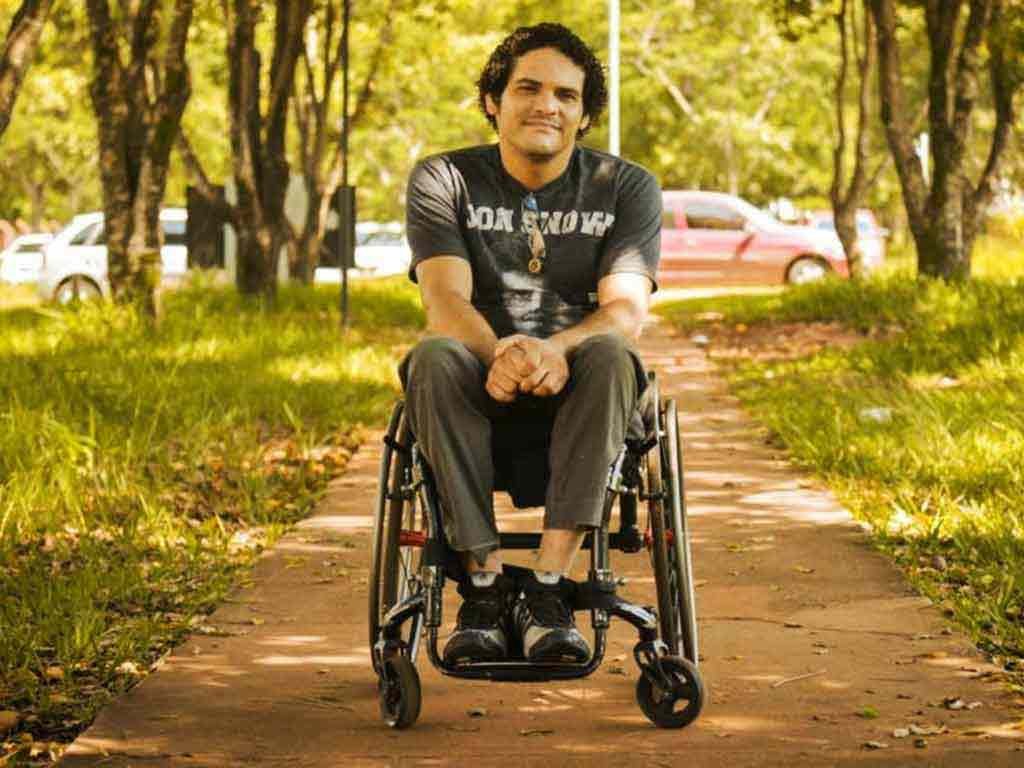 O estudante Diogo Batista Meneses, de 31 anos, pede ajuda para comprar uma cadeira de rodas, após a dele ter quebrado o encosto. Morador de Goiânia, o estudante ficou paraplégico depois de ser baleado em um assalto, quando voltava do trabalho, há nove anos, e não tem condições financeiras de adquirir uma nova.