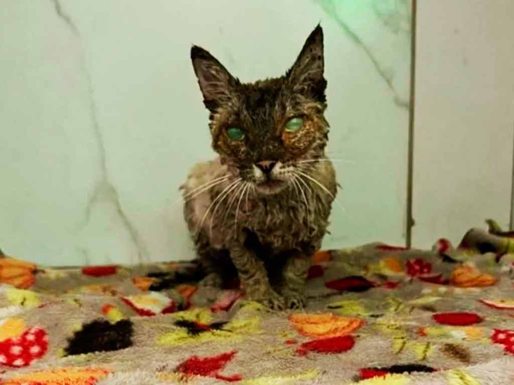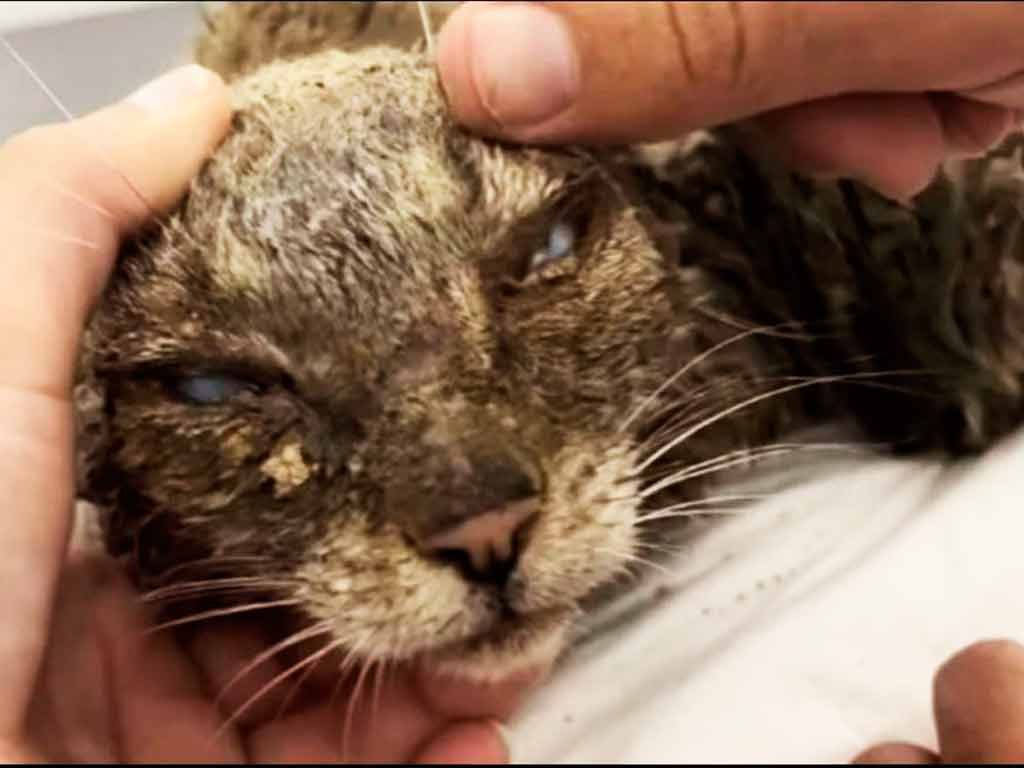 Uma gata ficou cega depois de ser mergulhada no cimento, em