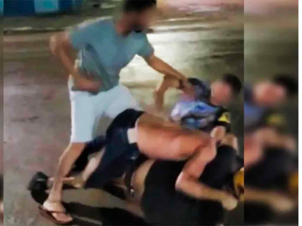 [caption id="attachment_134270" align="alignnone" width="1024"] Jovem sendo agredido enquanto tenta ajudar amigo em briga — Foto: Reprodução/Redes sociais[/caption]