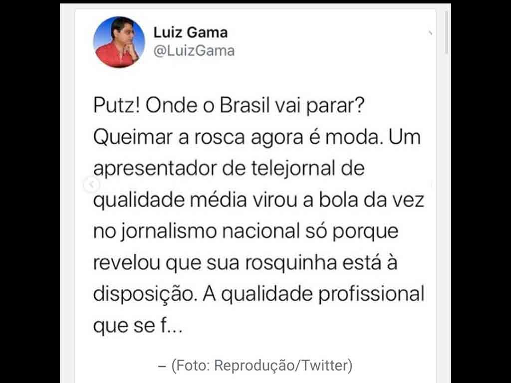 Nos comentários, Gama escreveu que o registro de fato não era necessário, já que há jornalistas que ganham notoriedade por causa da cor da sua pele e da sua sexualidade.