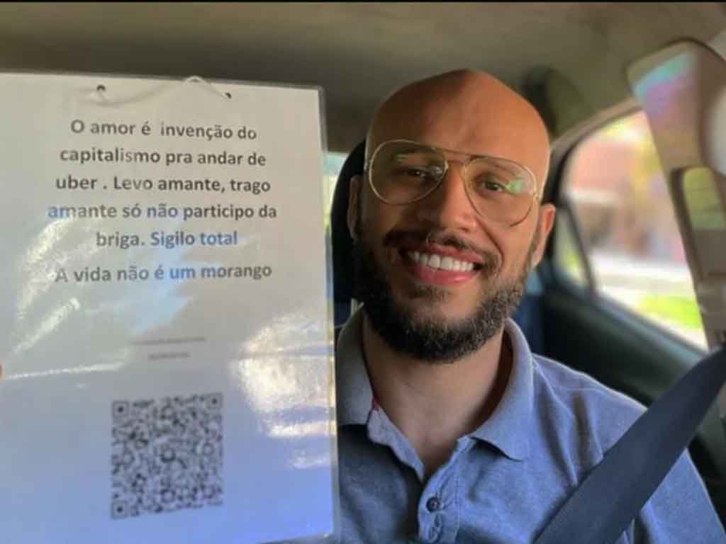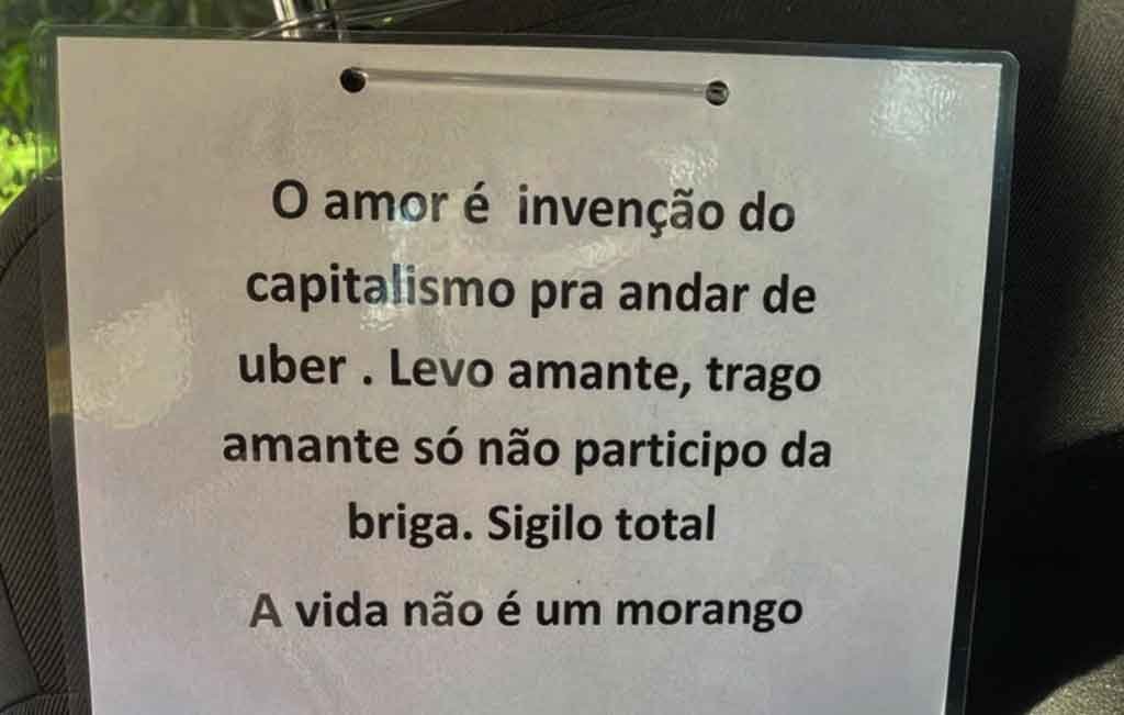 que trabalha como motorista há menos de um mês e a ideia é transportar passageiros em corridas particulares sem comprometer o relacionamento alheio. Ao g1, ele contou que as histórias que ouve no dia a dia no carro que motivaram a criação da plaquinha.
