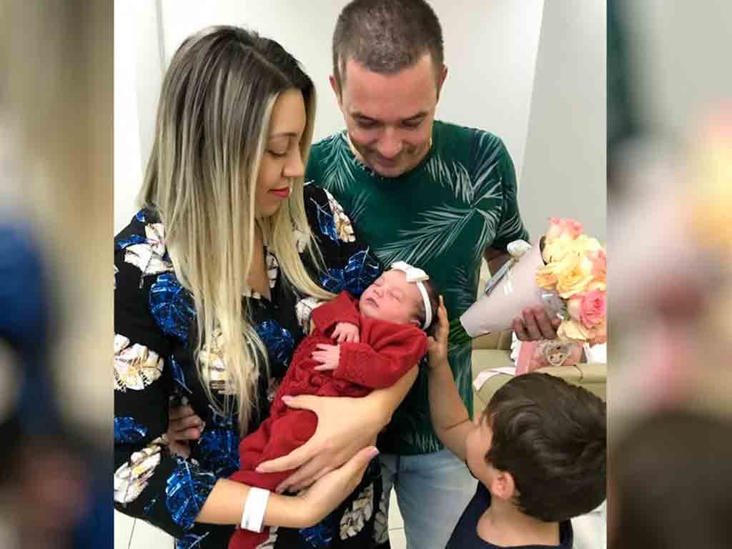 A pequena Bárbara já está em casa com a mãe Brunna de Oliveira, além do pai e o irmão Flávio Henrique, de 6 anos — Foto: Flávio de Oliveira/Arquivo pessoal[/caption]