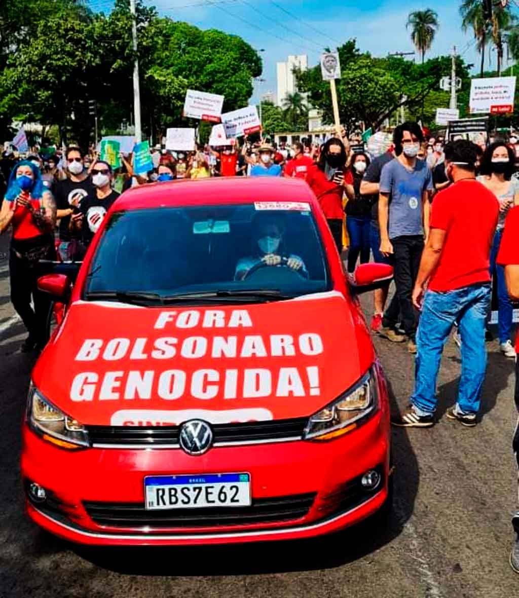 Bolsonaro genocida” em seu carro, o educador Arquidones Bites Leão Leite, de 58 anos,