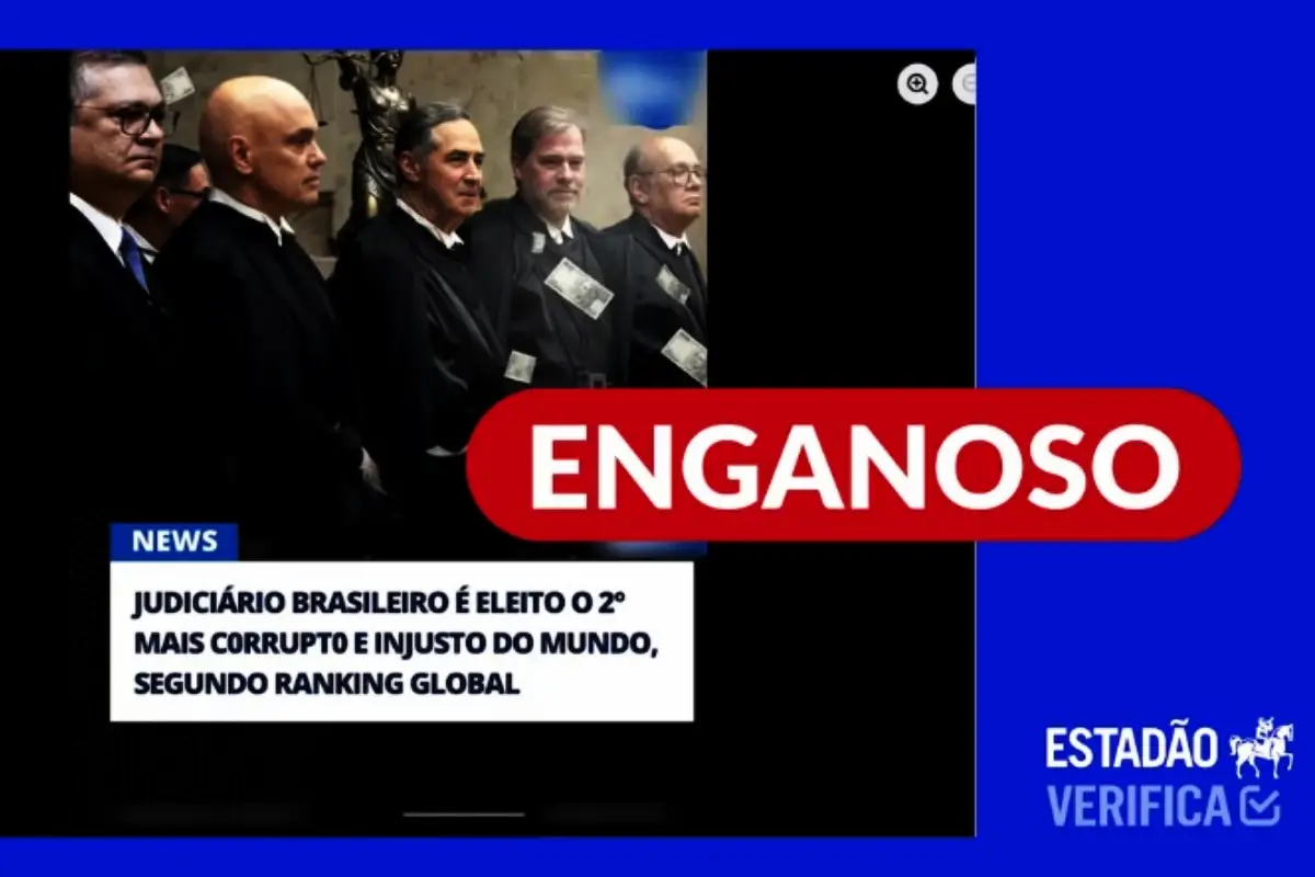 O que estão compartilhando: que o Judiciário brasileiro teria sido eleito o segundo mais corrupto e injusto do mundo, segundo ranking global.