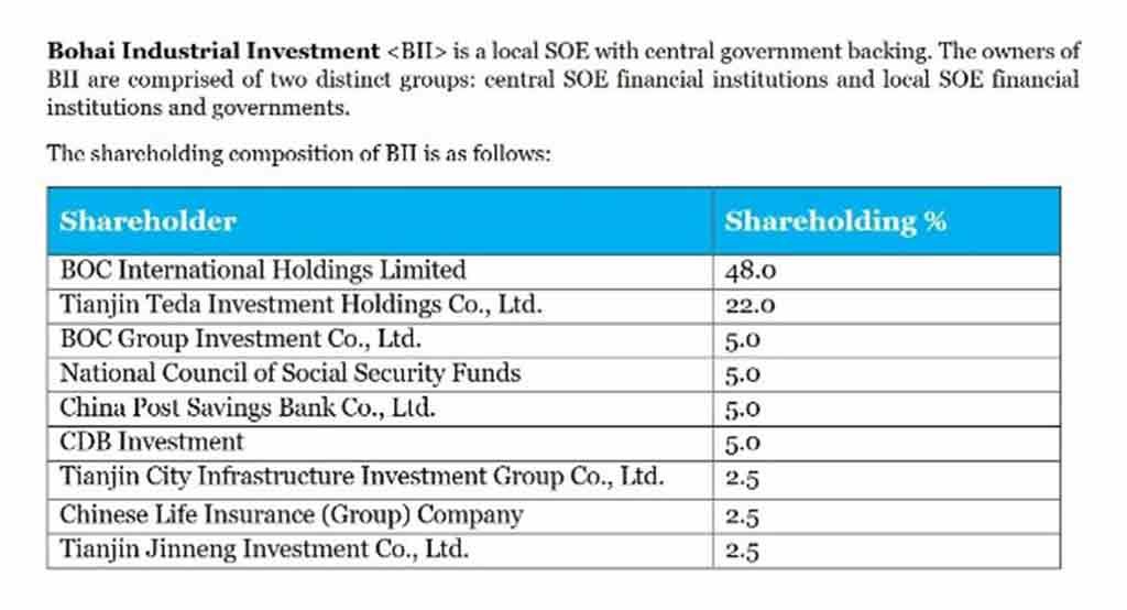 Mais de 50% do BHR é propriedade do Banco da China (BOC abaixo):