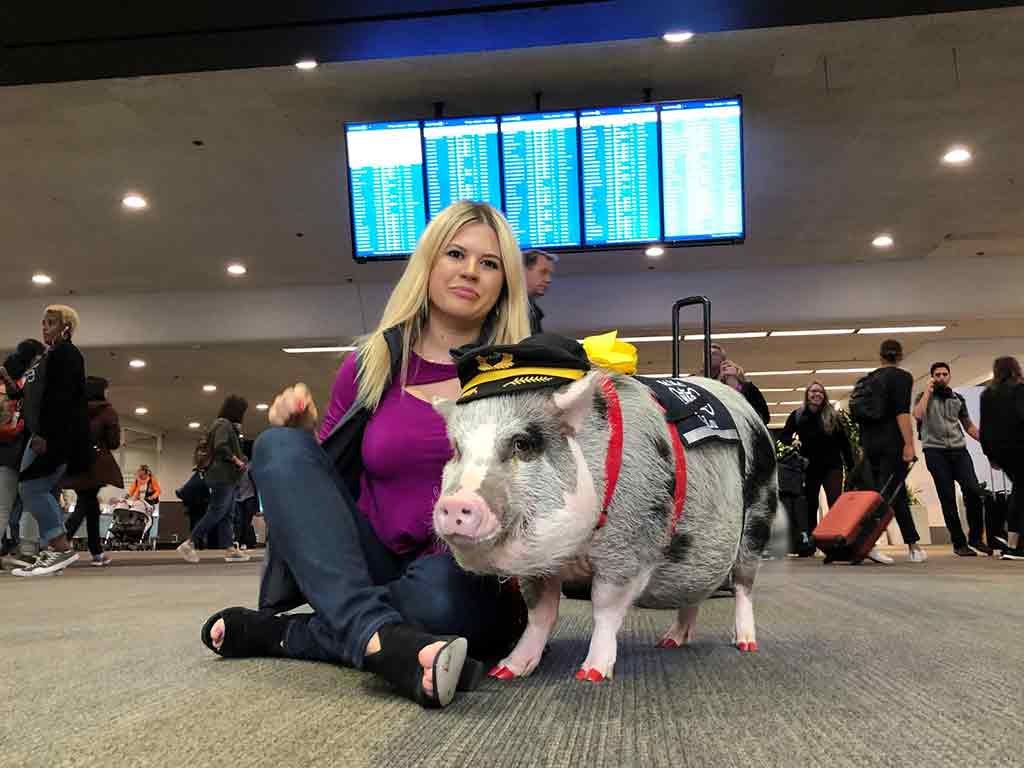“Nunca vi um porco no aeroporto. Ela faz truques como um cachorro!” comentou a menina.