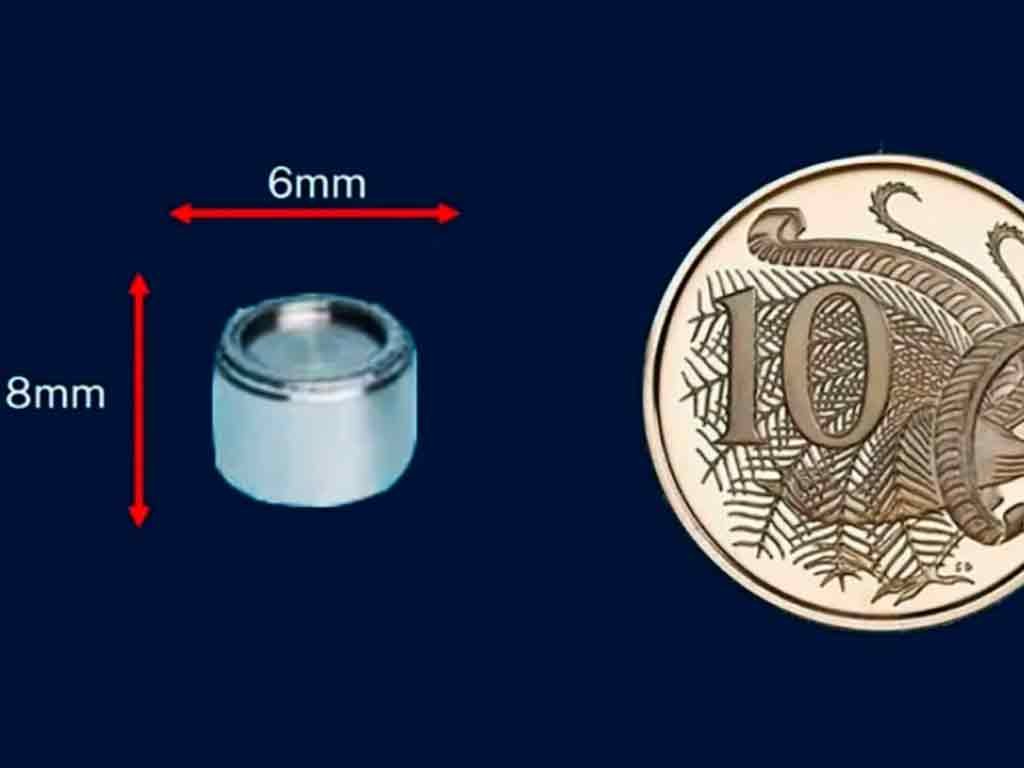 Uma ilustração fornecida pelo Departamento de Saúde da Austrália Ocidental mostra o tamanho da cápsula em comparação com uma moeda.[/caption]