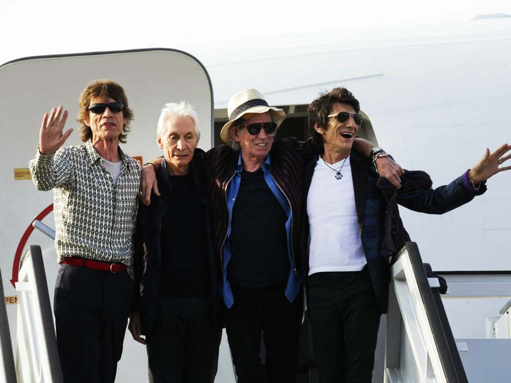 Mick Jagger, Charlie Watts, Keith Richards e Ron Wood posam ao chegar no aeroporto de Havana, em Cuba, em março de 2016 — Foto: AP Photo/Ramon Espinosa File[/caption]