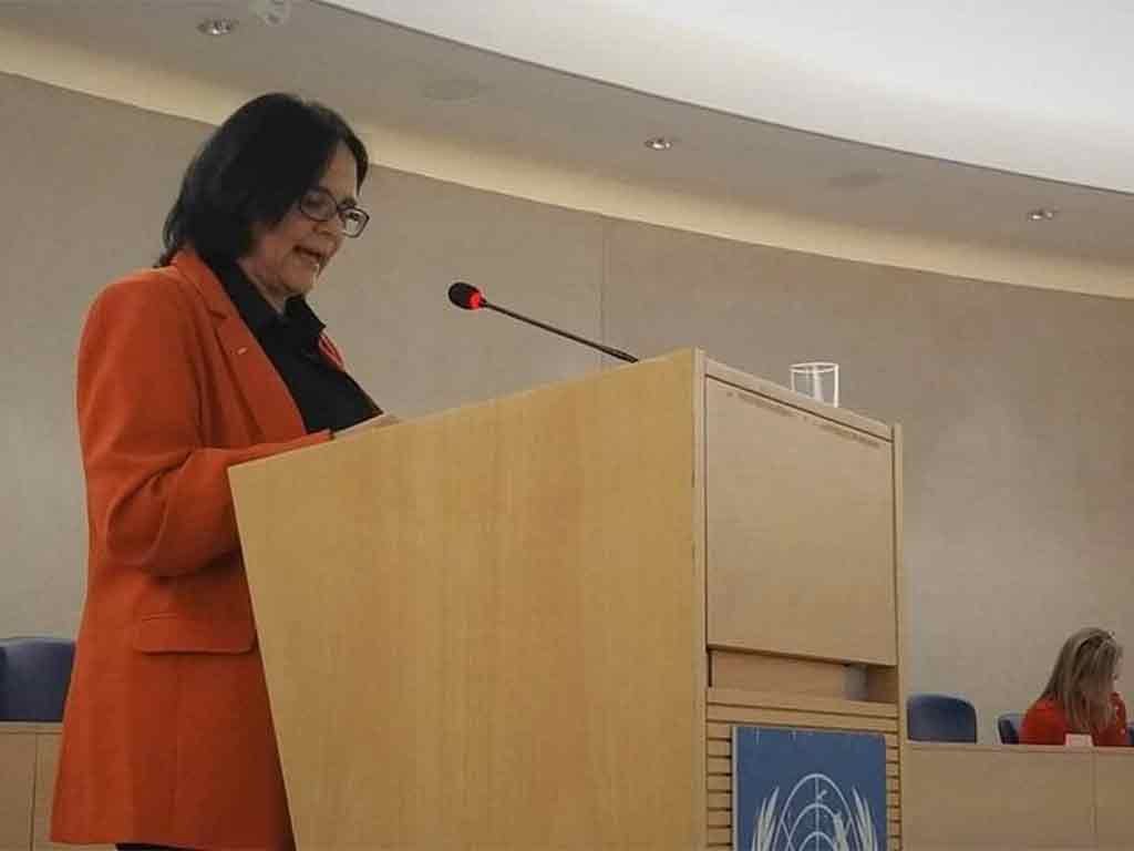 [caption id="attachment_78454" align="alignnone" width="1024"] A ministra da Mulher, da Família e dos Direitos Humanos, Damares Alves, durante discurso em Genebra Foto: Divulgação[/caption]