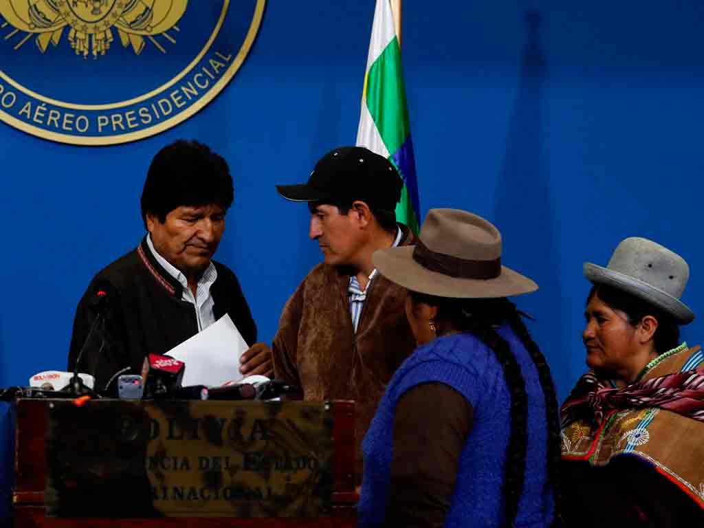 O presidente boliviano já havia cedido à pressão neste domingo e anunciado novas eleições, após 18 dias de protestos em que pediam a anulação das eleições de 20 de outubro, nas quais foi reeleito.