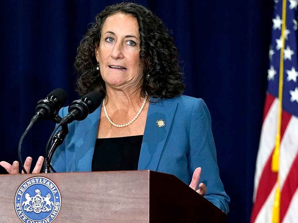 A secretária de Estado da Pensilvânia, Kathy Boockvar, fala durante uma coletiva de imprensa oferecendo atualizações sobre a contagem dos votos nas eleições gerais, quarta-feira, 4 de novembro de 2020, em Harrisburg, Pensilvânia (AP Photo / Julio Cortez)[/caption]
