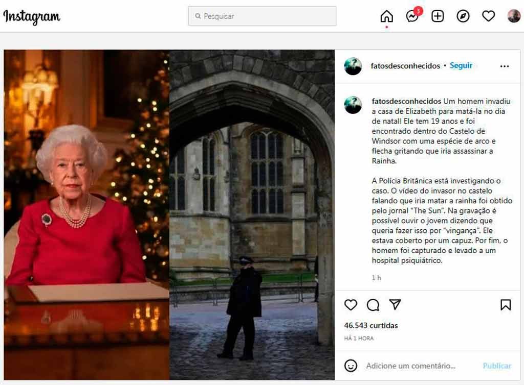 Nas redes sociais a preocupação com a rainha Elizabeth II, em 22 de julho de 2021 — Foto: Instagram[/caption]