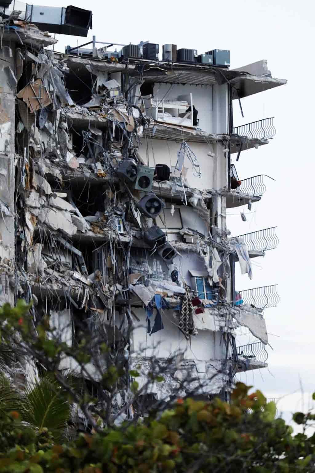 Prédio desaba parcialmente em Miami Beach, na Flórida, em 24 de junho de 2021 nos Estados Unidos — Foto: Marco Bello/Reuters[/caption]