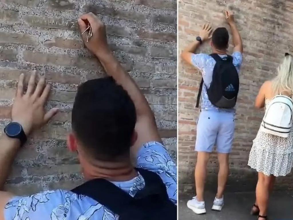 Dimitrov supostamente rabiscou “Ivan+Hayley 23” na parede do Coliseu, representando os nomes dele e de sua namorada.