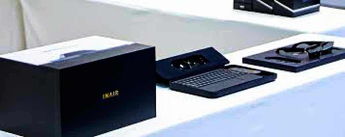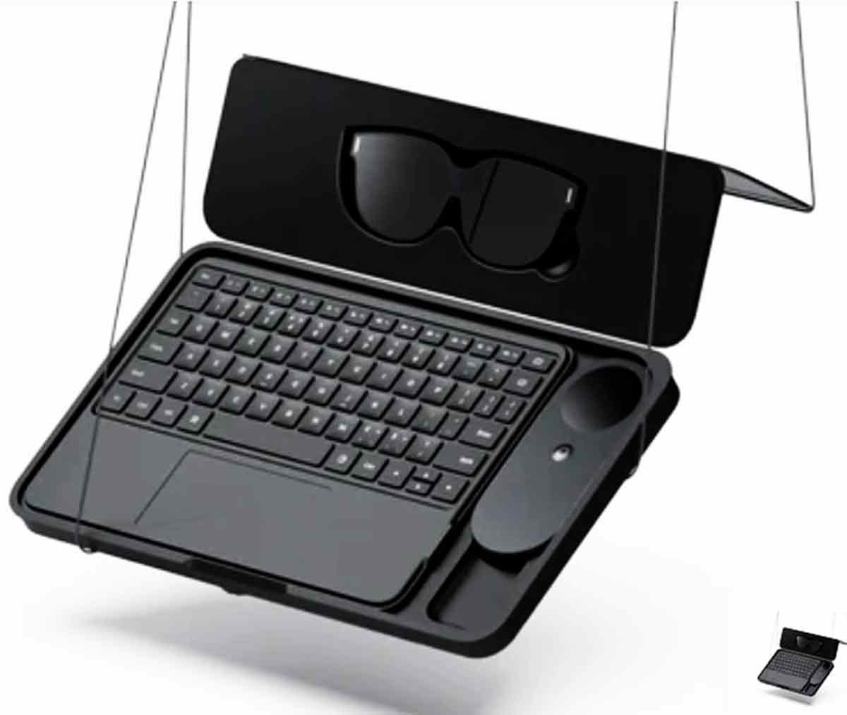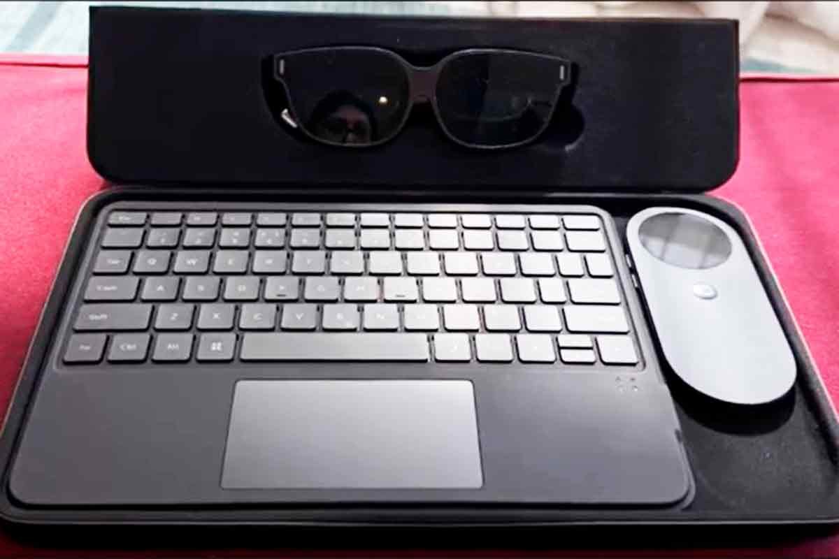 O INAIR AI Spatial Computer é um novo tipo de computador que funciona através de óculos inteligentes com realidade aumentada, conectados a um hub de processamento e um teclado portátil.