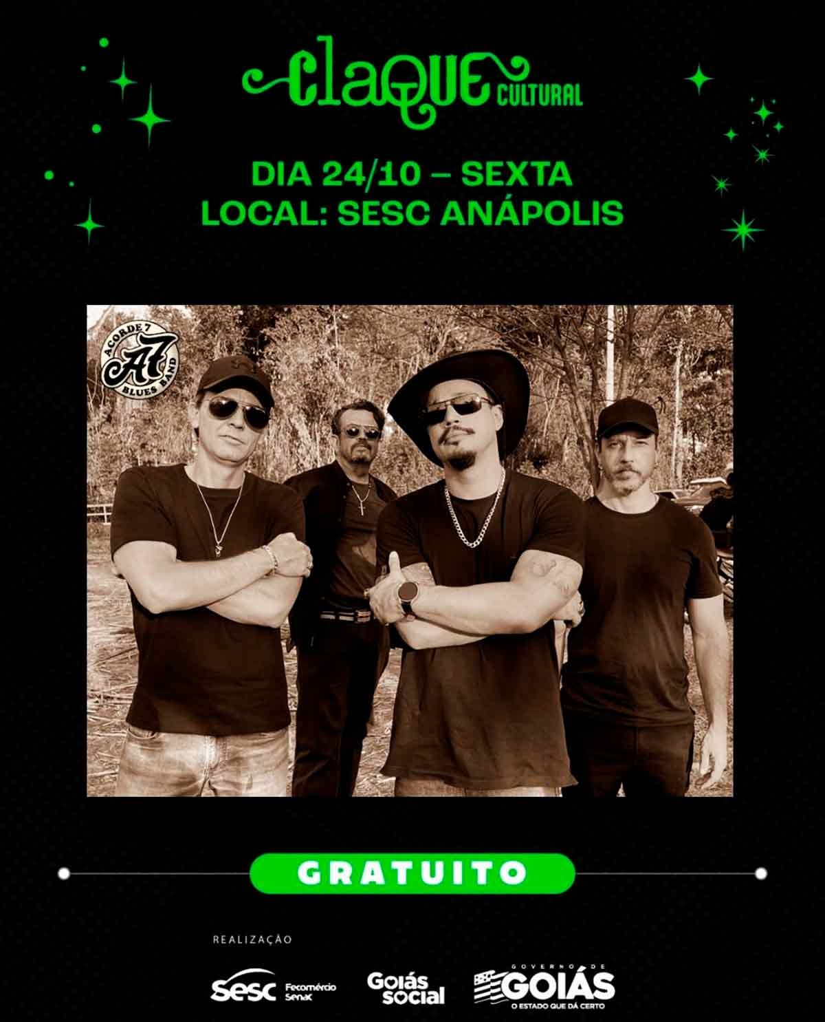 No dia 24 de outubro (sexta-feira), às 21h, o Auditório do SESC Anápolis, no Bairro Jundiaí recebe o show da Acorde7 Blues Band inaugura o Projeto Claque Cultural em Anápolis pic.twitter.com/N5Ojq90oQ3