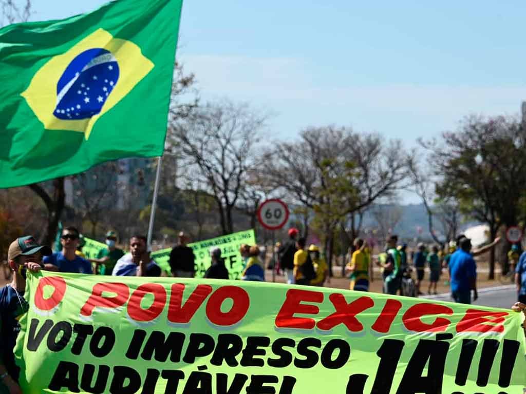 realizam ato neste domingo (1º) em Brasília em defesa do voto impresso.