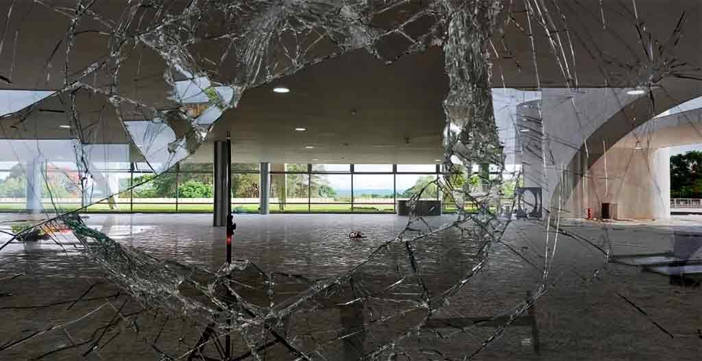 Vidros quebrados no Palácio do Planalto - Foto Bruno Góes / Agência Globo[/caption]