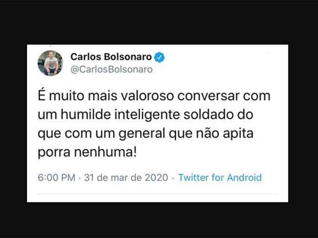 Os fatos estão mostrando as ações do Chefe do Estado-Maior do Planalto, com a retirada de um tuite da conta do Presidente da República nesta mesma manhã.