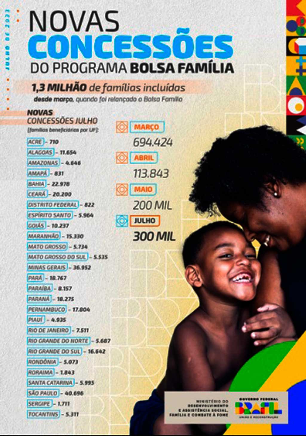O Ministério do Desenvolvimento divulgou nesta 3ª feira (18.jul.2023) um texto com 1.380 palavras (íntegra – 3,8 MB) que induz o leitor a achar que houve aumento do número de beneficiários do Bolsa Família.