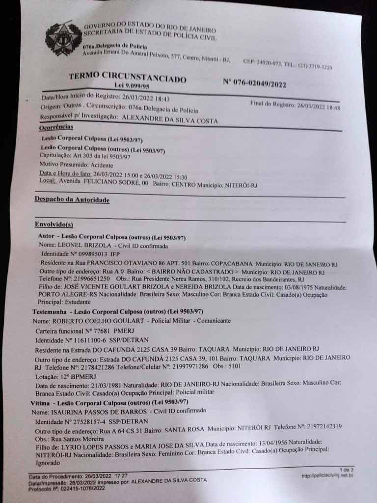 O incidente foi provocado por Leonel Brizola Júnior.