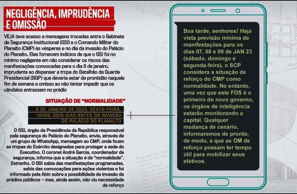 [caption id="attachment_130746" align="alignnone" width="1024"] A revista VEJA expos mensagens revelando que comandante do GSI, homem de confiança de Lula, ‘permitiu’ os atos de vandalismo em Brasilia no dia 08[/caption]