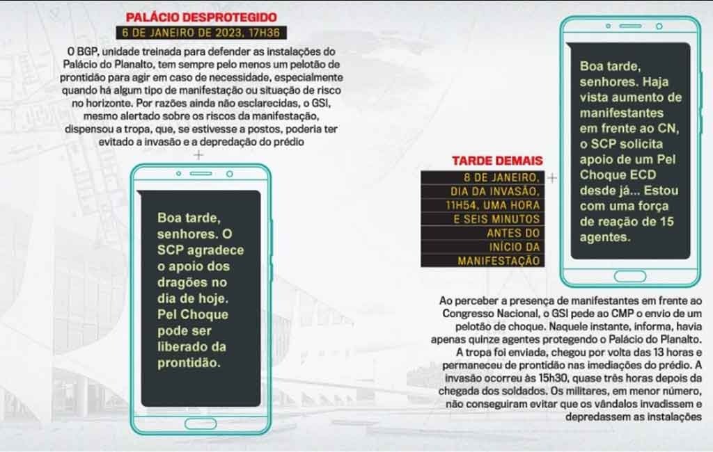 VEJA teve acesso a um conjunto de mensagens que revelam que houve no mínimo negligência, imprudência e omissão de autoridades lotadas no próprio Palácio do Planalto, particularmente no GSI, comandado