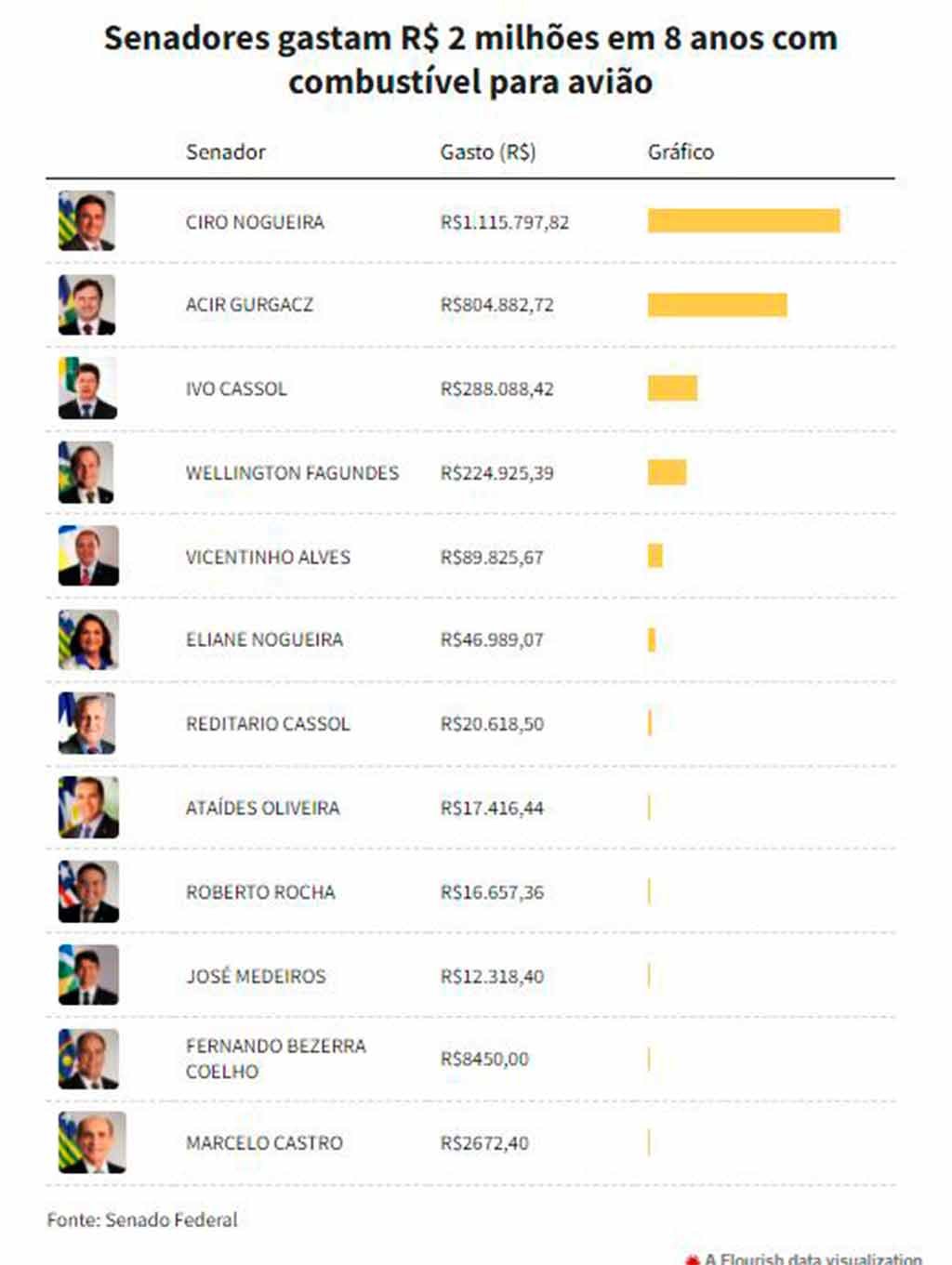 Confira os gastos dos senadores com combustíveis para abastecimento de aeronaves particulares:[/caption]