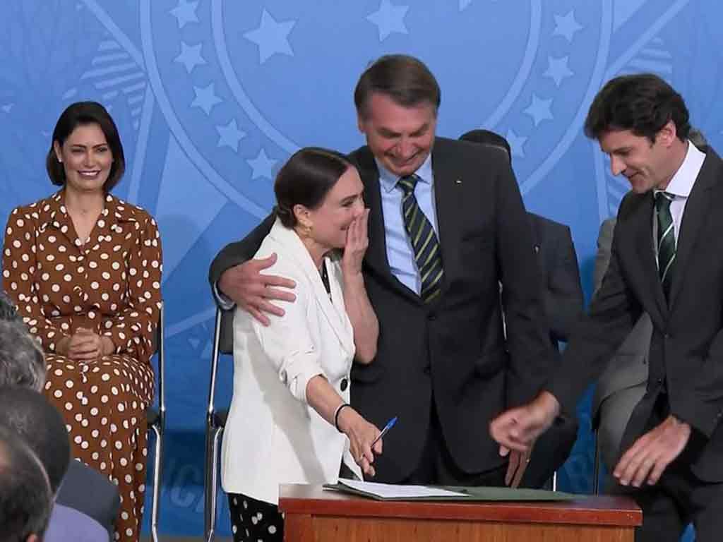 “Já deixamos um ano para trás e ainda, de forma tímida apenas, começamos a escrever a cultura. Com a chegada dessa grande mulher, Regina Duarte, estamos colocando nas mãos de quem realmente entende do assunto esse desafio”, disse o presidente.