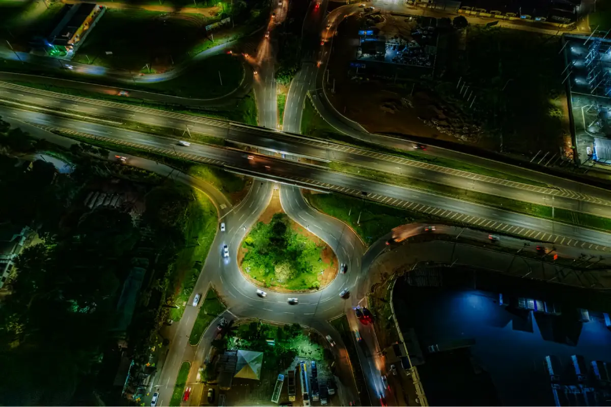 A intervenção reforça a visibilidade noturna e amplia a segurança viária em um entroncamento marcado por intenso tráfego e múltiplos acessos.