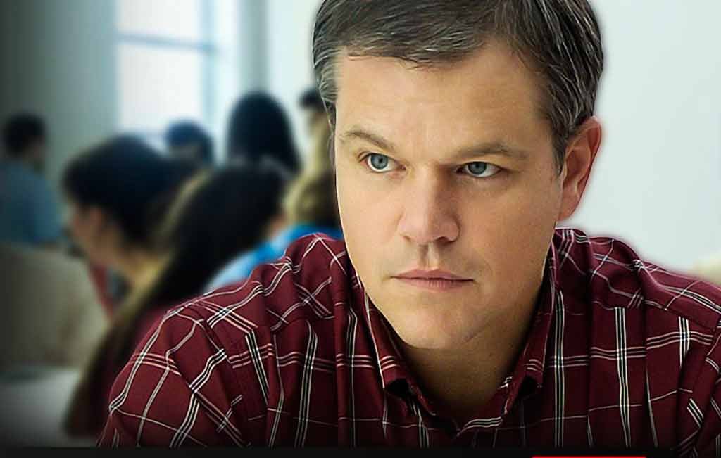 interpreta Paul, terapeuta ocupacional levemente angustiado por não poder ter uma vida mais confortável. Ao longo dos anos, ele acompanha ligeiramente interessado a evolução da comunidade dos pequenos, porém, sem demonstrar propensão particular a aderir à novidade. Contudo, seduzido pela possibilidade de transformar milhares de dólares em milhões e, finalmente, proporcionar à esposa a casa dos sonhos, ele resolve encolher junto dela. Não é à toa que Pequena Grande Vida deixa clara a quase imprescindibilidade de passar pelo processo como um casal, historicamente uma condição que auxilia a perpetuação de determinados valores importantes à expansão de alguns mercados. Guiados por um roteiro engenhoso, que mescla habilmente momentos cômicos e tiradas ferinas, somos apresentados ao método de reduzir as pessoas e realoca-las num mundo completamente novo. Todavia, um contratempo altera o rumo das coisas, deixando Paul desorientado e de volta ao proletariado.